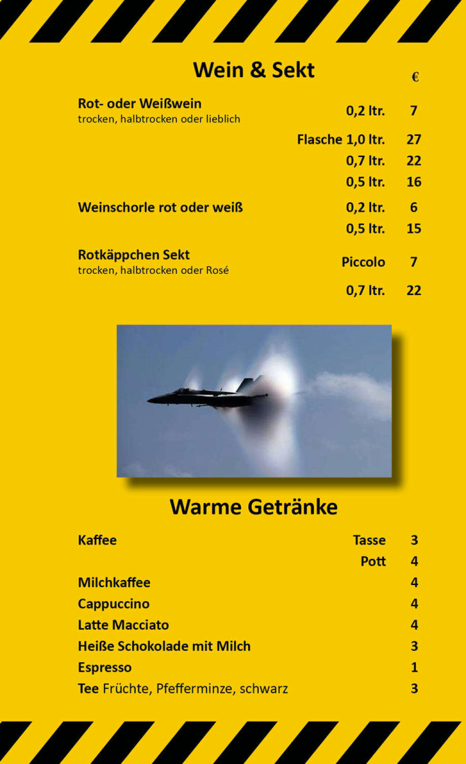 Wer mal Lust auf etwas Besonderes hat, der bestellt bei uns auch schon mal nen "AFTERBURNER", "FLYING HIRSCH" oder "CARDINAL MENDOZA"...probiert es einfach aus ! Fast schon legendär ist unser Mirto!